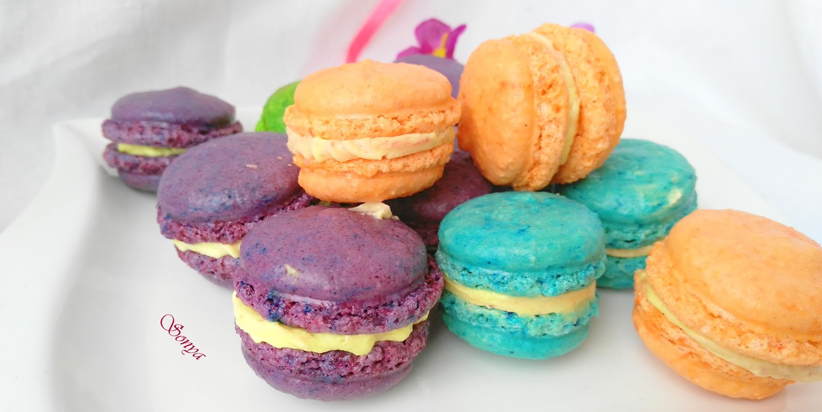 рецептата е за 1 доза макарони с цвят и крем по избор. прахообразна сладкарска боя в желан от вас цвят моята е оранжева в случая продукти за слепващия крем шоколадов ганаш при мен. рецепта за френски макарони които изглеждат като дъга от весели цветове но с големина скриваща се на две хапки в устата тези малки деликатни сладкиши са леко хрупкави и меки при дъвчене. когато за първи път опитах френски макарони светът като че ли спря и ако някой ми беше подал кърпичка щях да отроня някоя и друга щастлива сълза.